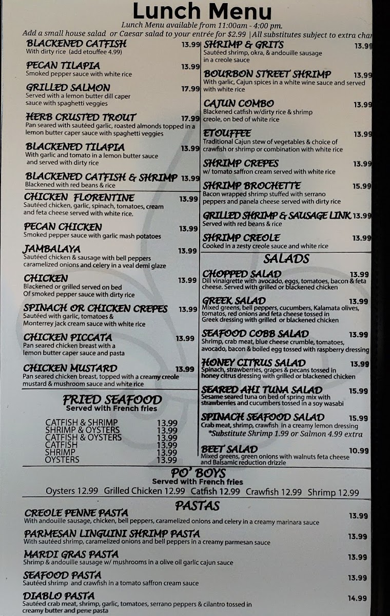 Their menu offers a wide range of flavorful options, from classic Cajun-inspired dishes to fresh seafood catches, all prepared with a unique blend of spices and seasonings. You’ll find everything from hearty po'boys and succulent fish platters to satisfying seafood boils. Pair it with a cold drink, and you’re in for a treat. The casual atmosphere and welcoming service make it the perfect place to enjoy a hearty meal with friends or family. If you love seafood, you’ll definitely want to check out what they have to offer.